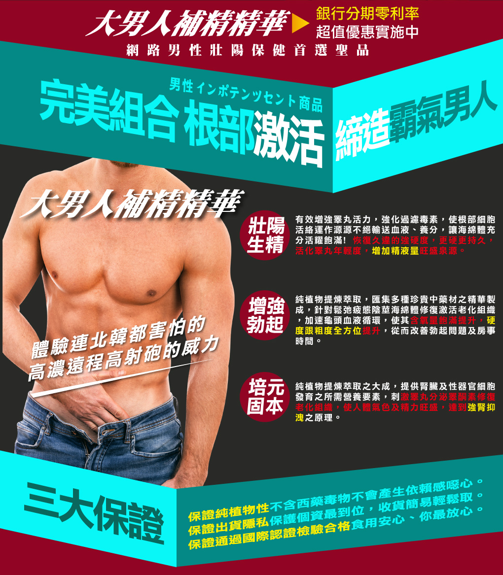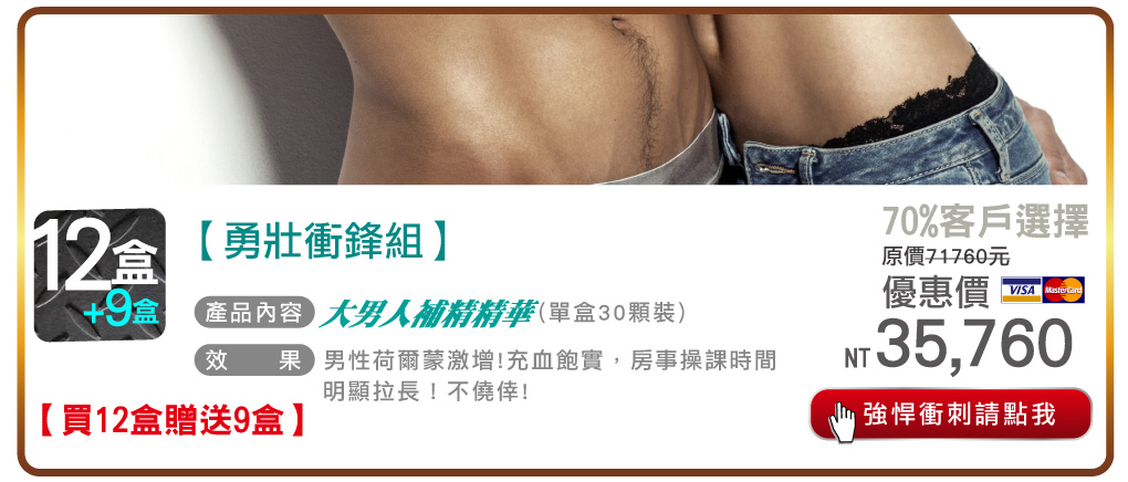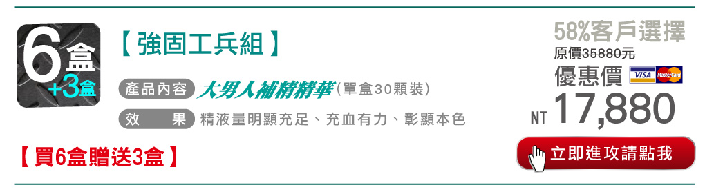 贈品: 大男人補精精華18盒(10顆/盒)