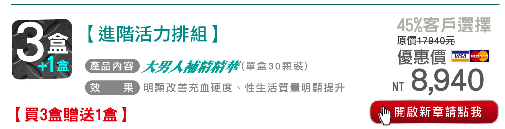 贈品: 大男人補精精華3盒(10顆/盒)